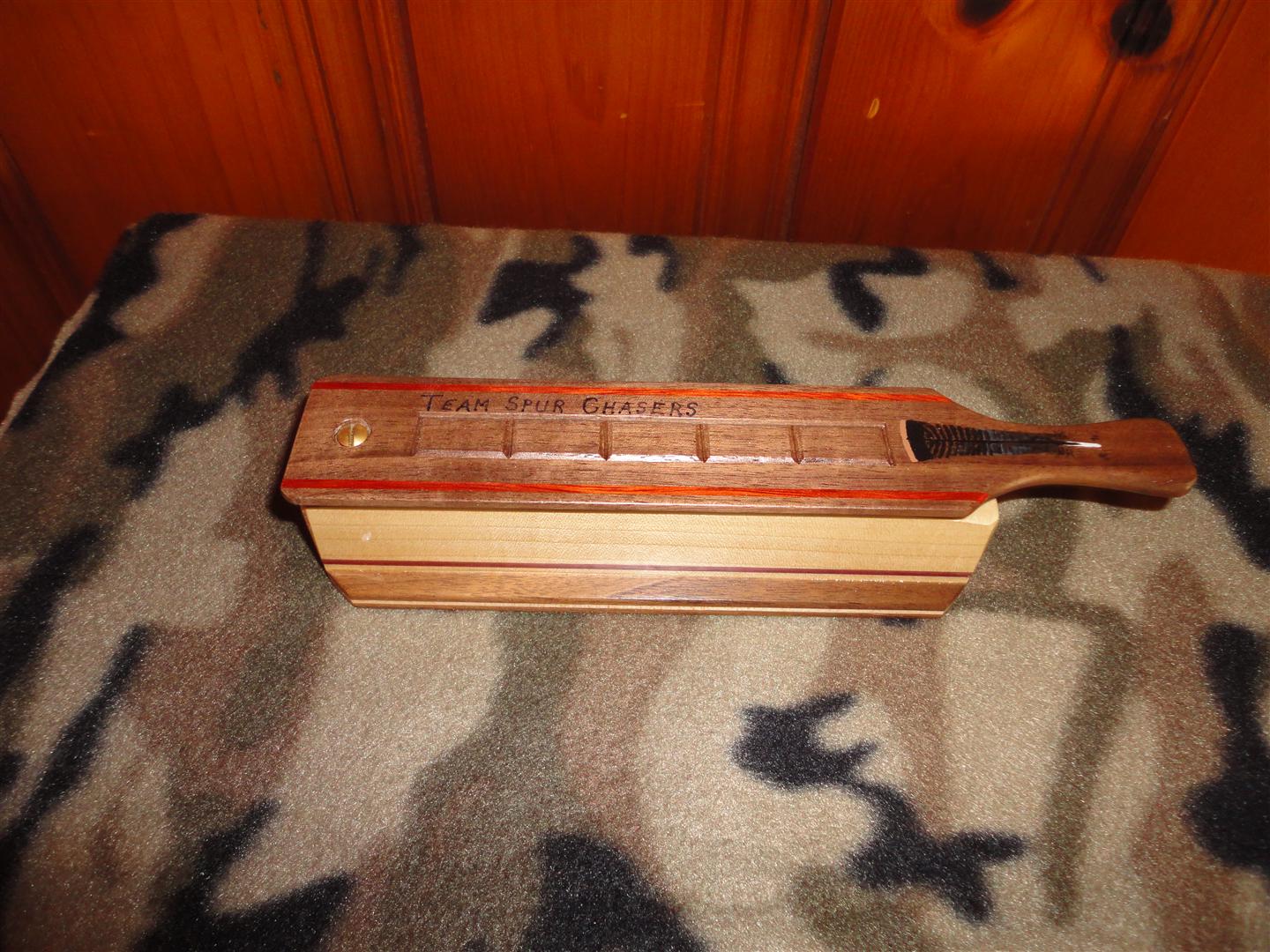A "one-sided" box call I made for a NWTF "Travel Call" in 2010. This Poplar/Cherry call accounted for 6 gobblers of 3 different sub species.