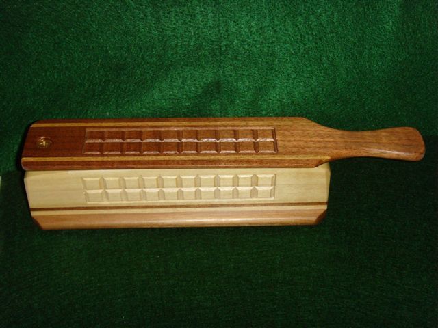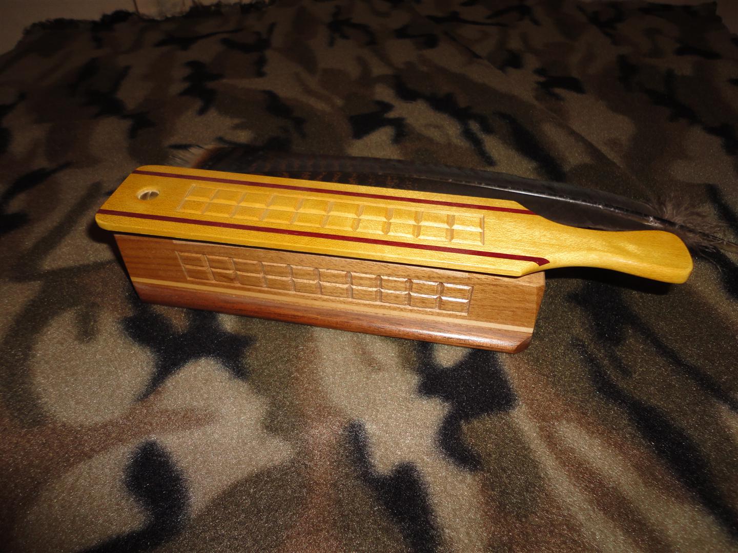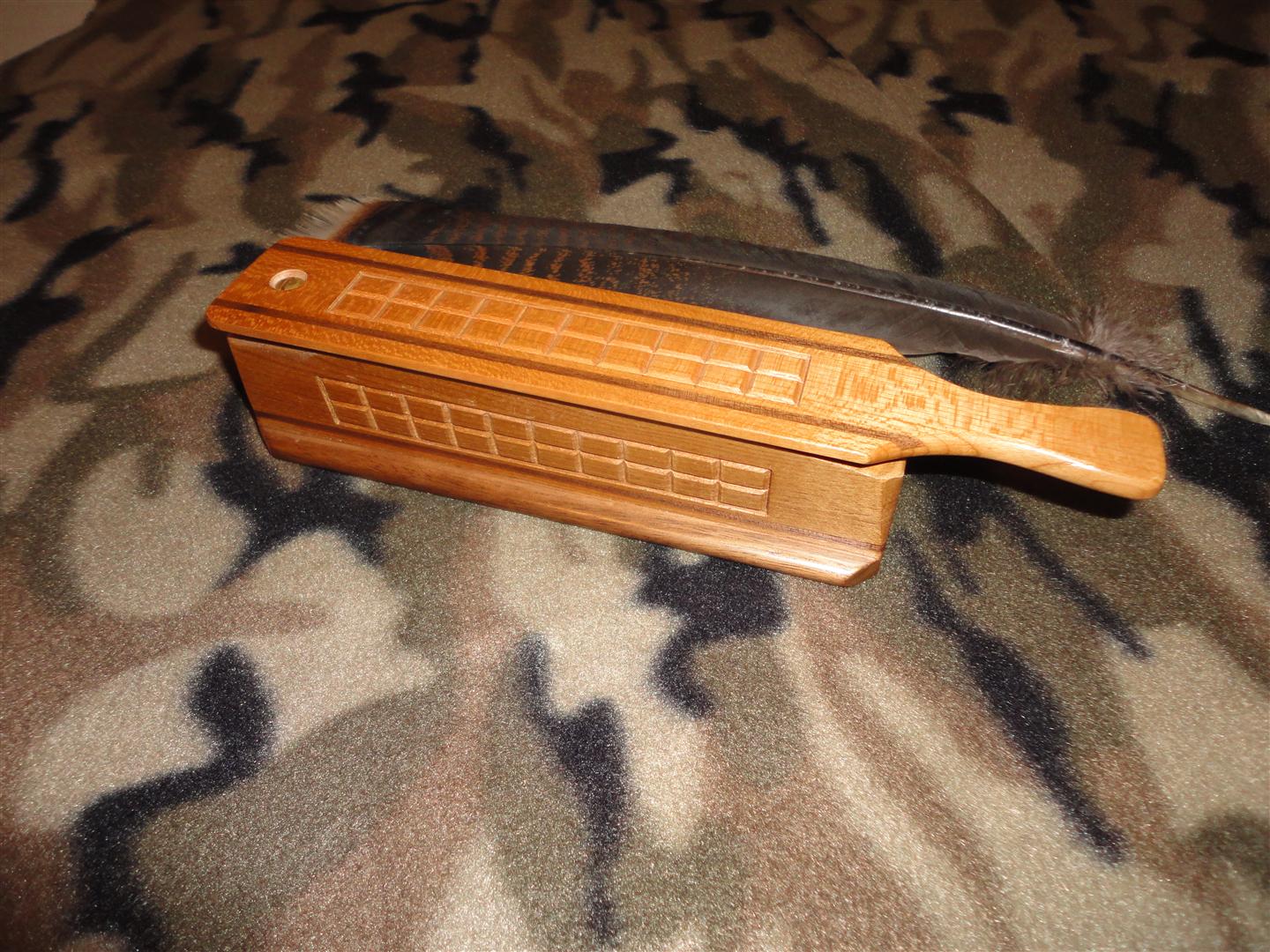 The boxes I make are "Cost" style hewn calls. The woods I usually use for these are Yellow Poplar, Mahogany, Black Limba, and Butternut. My checking patterns are done by hand with a chisel and mallet.